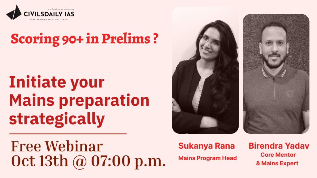 Scoring 90+ in Prelims? Begin your Mains preparation strategically || attend our FREE webinar & speak with our mentors in an open discussion post webinar.
